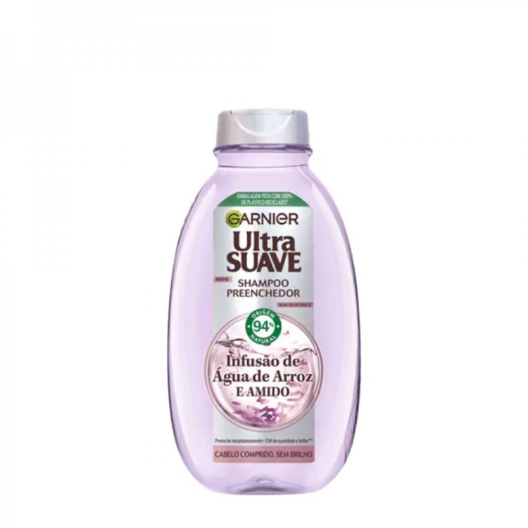 DescriçãoO shampoo preenchedor de Garnier Ultra Suave com Infusão de Água de Arroz é ideal para cabelos compridos e sem brilho.