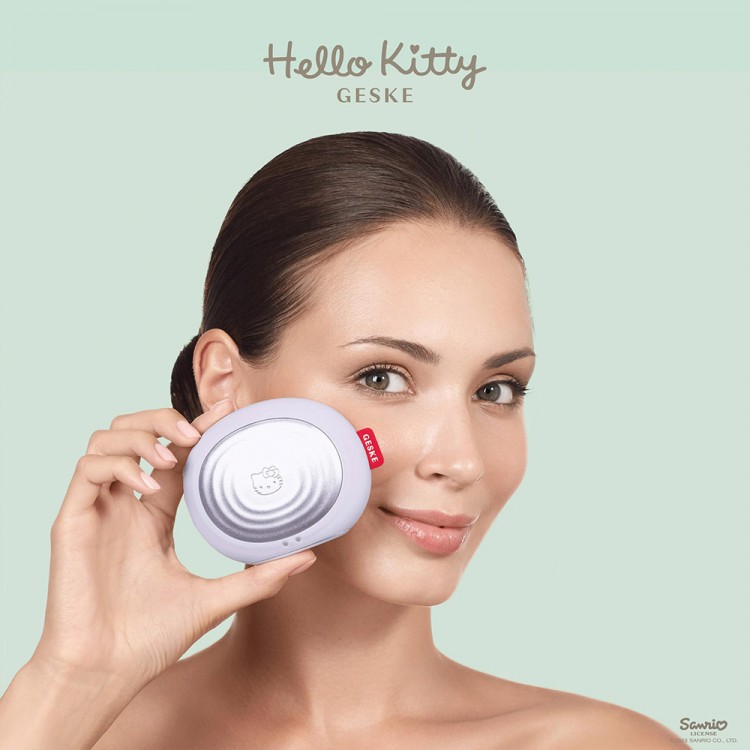 Massajar com a SmartAppGuided™ Hello Kitty Sonic Warm&Cool Mask Rosa | 8 em 1 da GESKE, até absorção na pele. Não enxaguar.