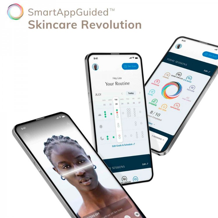 Por último, mas não menos importante, a nossa SmartAppGuided™ Sonic Warm & Cool Mask apresenta a SmartSonic Pulsation Technology que agita suavemente a sujidade solta e os resíduos de maquilhagem invisíveis na tua pele através de mais de 11000 pulsações sónicas por minuto. Os pontos de tensão muscular do rosto e pescoço experimentam um relaxamento profundo e satisfatório graças à Youthful Glow Massage Technology, ao mesmo tempo em que aumenta o brilho da tua pele para um novo nível.