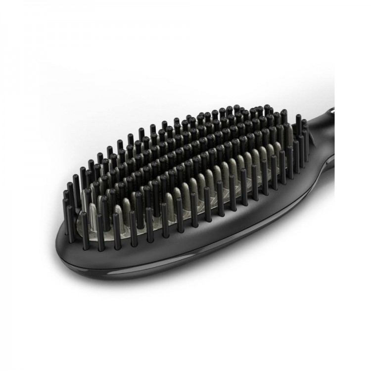 Cerdas cerâmicas: Combinação de cerdas de alta densidade longas e curtas para possibilitar pentear secções de cabelo mais compridas.