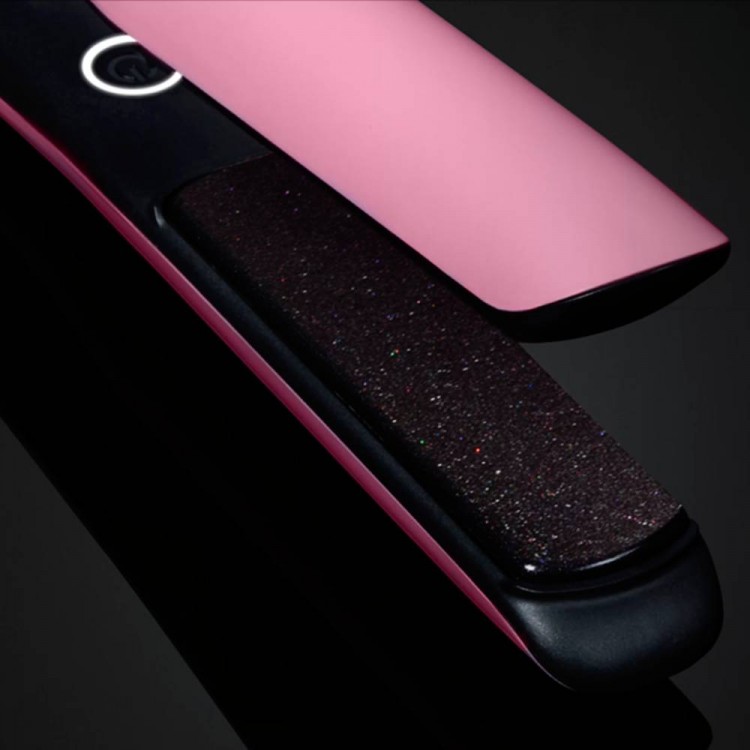 Em edição limitada na cor rosa chiclete, a exclusiva prancha de cabelo profissional Gold avançada é acompanhada por um nécessaire térmico a condizer.