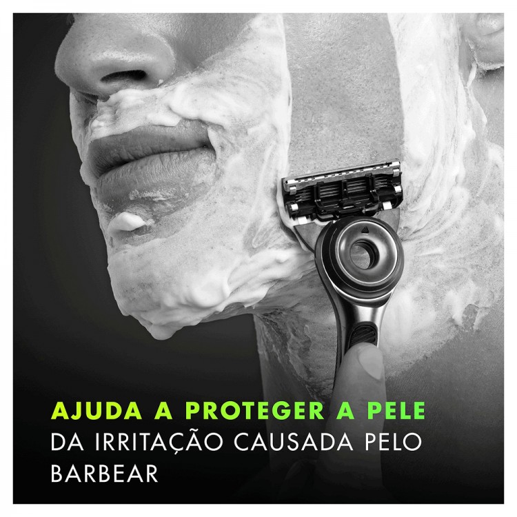 Proteção da pele: a espuma assegura um deslizar perfeito da máquina de barbear e protege a pele durante o barbear.