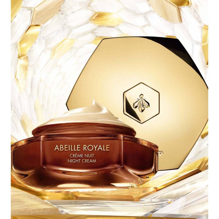 Descrição O Creme de Noite Abeille Royale de Guerlain combina a tecnologia BlackBee Repair com um derivado da vitamina E, para ajudar a combater a flacidez da pele. Reafirma a pele e suaviza as rugas e linhas de expressão. A textura tipo bálsamo do creme derrete-se suavemente na pele, sem deixar uma camada oleosa.