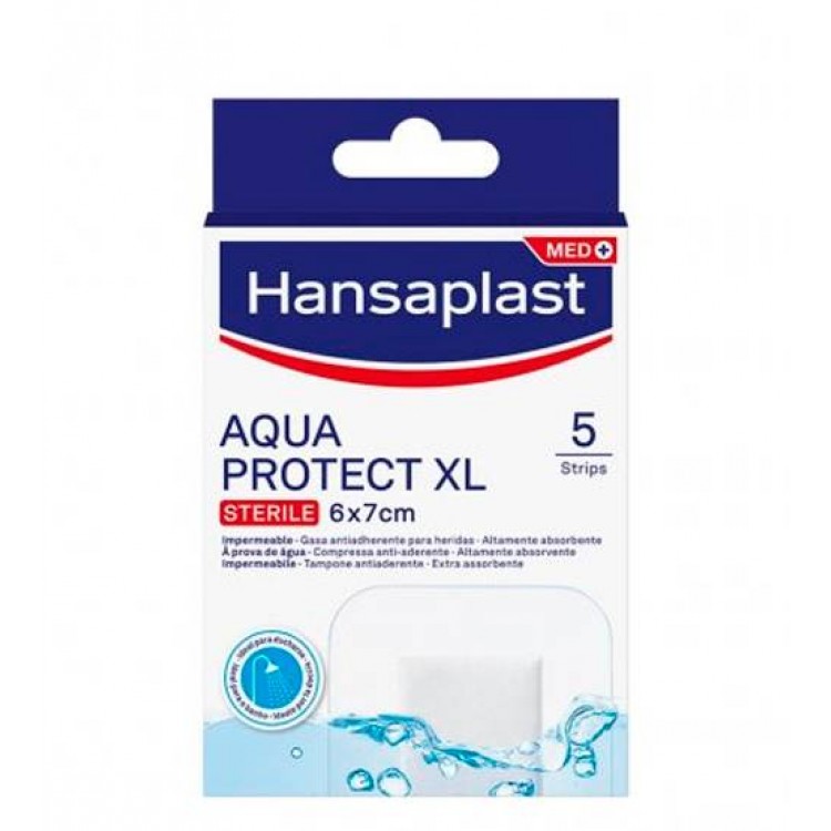 Os pensos Hansaplast Aqua Protect XL são pensos esterilizados para uma proteção à prova de água de feridas de tamanho médio a grande ou pós-cirúrgicas.