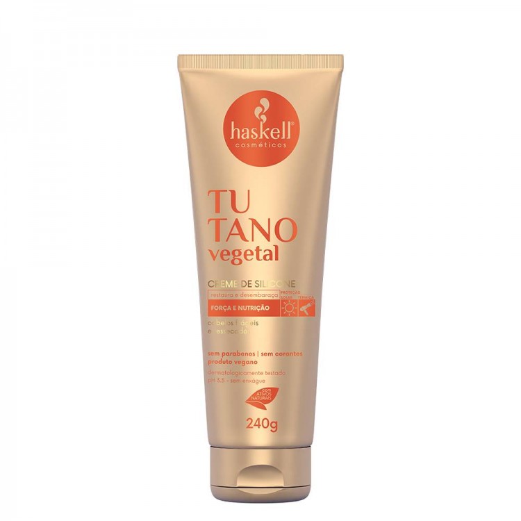 Haskell Tutano Vegetal Creme de Silicone 240ml: É um leave in composto por óleo de tutano e queratina, ideal para recuperar danos mais profundos causados pela química, além de ser termo protetor e proteger os fios contra ação solar. O creme de Silicone Tu