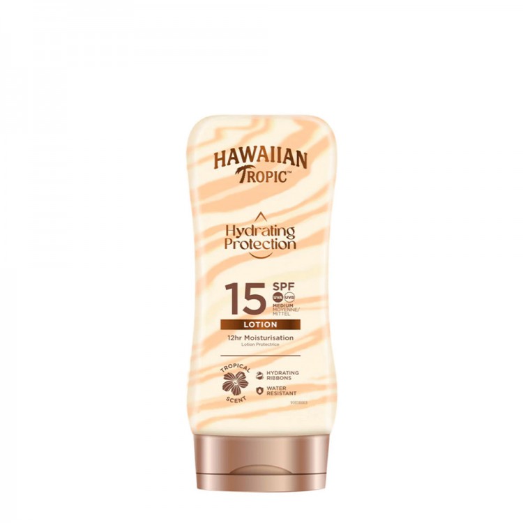 Hawaiian Tropic Silk Hydration Loção Solar SPF15 180ml: Protetor solar SPF15 em textura de loção. Graças aos seus filtros UVA e UVB, evita queimaduras e a ação prejudicial dos radicais livres. Formulado com proteínas naturais da seda que hidratam intensam