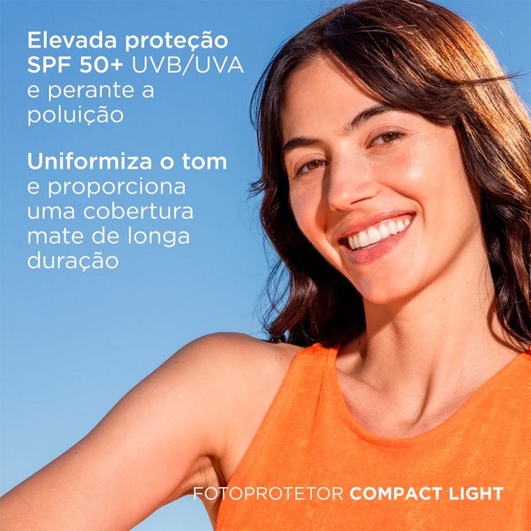 DescriçãoProtetor solar compacto com muito elevada proteção SPF50+ que combina maquilhagem e cuidado solar num só gesto. Ideal para todos os tipos de pele, incluindo pele sensível e atópica, proporciona um acabamento natural, uniforme e matificado que disfarça imperfeições e controla o brilho ao longo do dia.