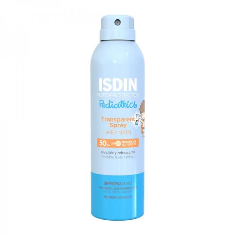 Como aplicar ISDIN Fotoprotector Pediatrics Transparent Spray Wet Skin SPF50 250mlAgitar antes de usar. Aplicar generosamente sobre a pele seca ou molhada, meia hora antes da exposição solar, mantendo uma distância máxima de 5cm da pele. É necessário espalhar o produto de modo uniforme, até total absorção. Reaplicar a cada 2 horas tanto sobre pele molhada ou seca. Repetir a aplicação após transpirar, nadar, ou secar-se com a toalha. Ao reduzir a quantidade aplicada ou se não se agitar suficientemente o produto, reduz-se o fator de proteção. Evitar o contacto com os olhos ou mucosas. Não vaporizar para o rosto.