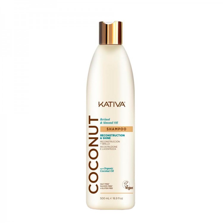 Kativa Coconut Shampoo 550ml: O Coconut Shampoo, enriquecido com óleo de coco orgânico, ajuda a reconstruir e limpar suavemente o cabelo e couro cabeludo, deixando-o revitalizado e brilhante.