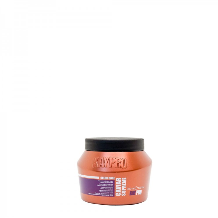 Kaypro Color Care Caviar Supreme Mácara Proteção de Cor 500ml: Aperfeiçoa e mantém a cor cosmética. O produto desembaraça, nutre e sela a cutícula, tornando-a sedosa, dócil e brilhante, sem sobrecarregá-la.