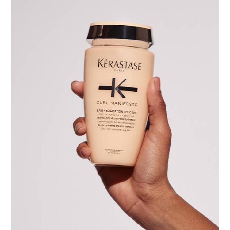 Kérastase Curl Manifesto Bain Hydratation Douceur - Shampoo cremoso hidratante suave infundido com Mel de Manuka e Ceramida para cabelo encaracolado, muito encaracolado e encrespado.