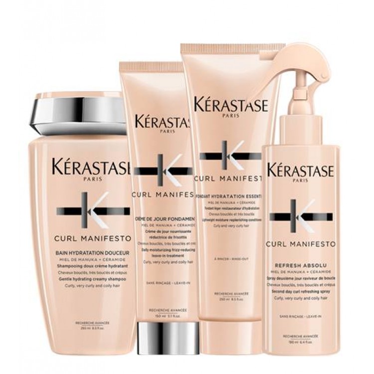 Kérastase Curl Manifesto Bain Hydratation Douceur 250ml + Crème De Jour Fondamentale 150ml + Fondant Hydratation Essentielle 250ml + Refresh Absolu 190ml