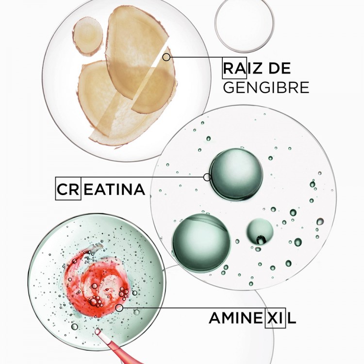 AMINEXIL: O aminexil, um ingrediente ativo descoberto pelo departamento de Investigação e Inovação de L'Oréal, é fundamental para manter a flexibilidade do revestimento capilar e proteger a área circundante da raiz, favorecendo a fixação do cabelo no couro cabeludo.