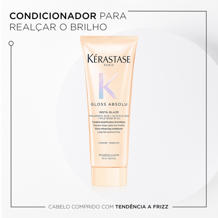 Entra no mundo do gloss! O Insta Glaze de Kérastase é um condicionador que realça o brilho do cabelo longo com tendência ao frizz. A sua fórmula, à base de ácido hialurónico, ácido glicólico e rosa silvestre em óleo, proporciona um cabelo glossy: suave, leve e brilhante.