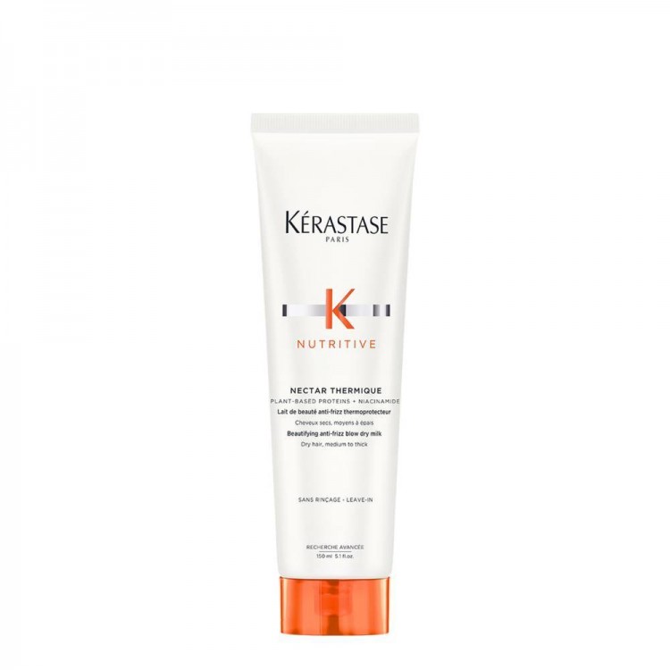 Nectar Thermique de Kérastase é um leite de secagem anti-frizz para cabelo seco, médio a espesso. Este leite capilar embelezador protege o cabelo seco das ferramentas de calor e contém niacinamida antissecura para desembaraçar, proporcionar nutrição, suavidade e brilho ao cabelo seco. Também contém uma combinação de nutrientes essenciais que potenciam a capacidade da fórmula em nutrir e fortalecer o cabelo.