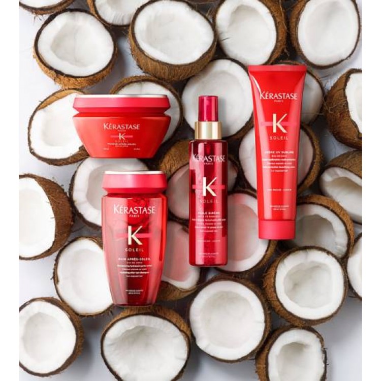 Shampoo pós-sol enriquecido com água de coco para remover suavemente os resíduos de cloro, sal e areia, limpando o cabelo dos efeitos de secagem. Em cabelo molhado, o gel translúcido faz espuma para purificar o couro cabeludo e comprimentos para um efeito profundamente refrescante e hidratante. O cabelo é hidratado através dos comprimentos para mechas instantaneamente refrescadas, luminosas e suaves. A fragrância perdura durante muito tempo, conferindo um cabelo luminoso levemente perfumados com um aroma de verão de jasmim e tuberosa.