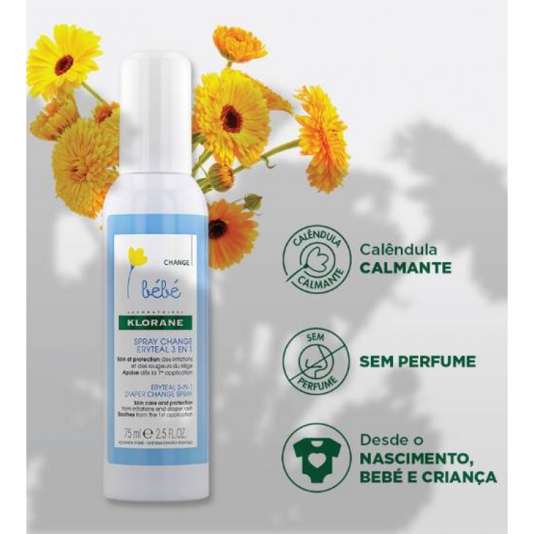 Como aplicar Klorane Bebé Eryteal Spray 75mlAgitar antes de utilizar. Em cada muda da fralda, aplicar 4 a 5 pulverizações na pele limpa e seca.