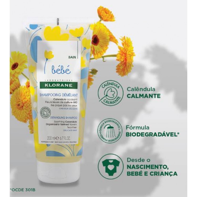 Shampoo desembaraçador com Calêndula calmante de cultura BIOLÓGICA. Desde o nascimento. pH Fisiológico. Cabelo. NÃO ARDE NOS OLHOS. Testado sob controlo dermatológico e pediátrico.