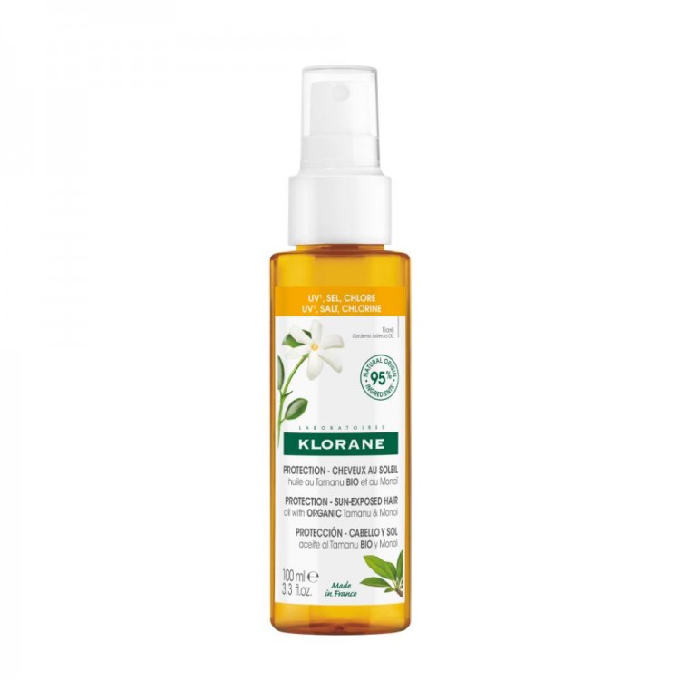 Klorane Tamanu BIO e Monoï Óleo Capilar para cuidar do cabelo exposto ao sol.