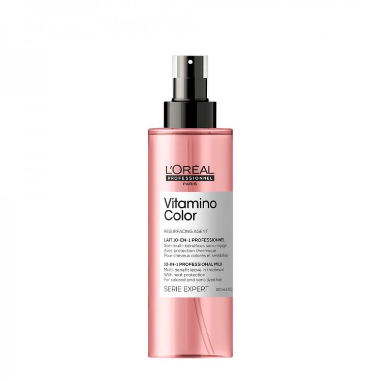 Spray Profissional aperfeiçoador multibenefícios 10 em 1 para cabelo sensibilizado e com coloração. Fórmula enriquecida com um agente reconstrutor. Uma ação para 10 benefícios: 1- proteção contra o calor até 230ºC* 2- brilho 3- toque suave 4- fibra homogénea 5- ajuda a desembaraçar 6- facilita a secagem 7- nutrição 8- antiquebra 9- anti pontas duplas 10- anti-frizz. Este spray multibenefícios pode ser usado antes do corte, antes da secagem ou para finalização. *Teste instrumental Benefícios 94% mais resistente à quebra e deixa o cabelo 3x mais brilhante com menos pontas duplas. Proteção térmica até 230ºC.* *teste instrumental. Como aplicar aplicar o spray em cabelo lavado, húmido ou seco. Finalizar. Não passar por água. Ingredientes Aqua / Water / Eau, Cocos Nucifera Oil / Coconut Oil, Amodimethicone, Polyquaternium-37, Phenoxyethanol, Propylene Glycol Dicaprylate/Dicaprate, Tocopherol, Sodium Hydroxide, Dimethicone Peg-7 Phosphate, Ppg-1 Trideceth-6, Trideceth-6, Behentrimonium Chloride, Xylose, Lactic Acid, Ethylhexylglycerin, Linalool, Sorbitan Oleate, Isopropyl Alcohol, Cetrimonium Chloride, Hydrolyzed Vegetable Protein Pg-Propyl Silanetriol, Resveratrol, Benzyl Alcohol, Limonene, Coumarin, Potassium Sorbate, Parfum / Fragrance. Esta lista de ingredientes está sujeita a modificações. Por favor consultar o rótulo do produto.