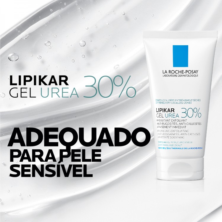 O gel hidratante da Lipikar com 30% de ureia ajuda a suavizar, hidratar e esfoliar a pele seca e áspera dos pés, mãos e corpo. Testado em pele sensível.
