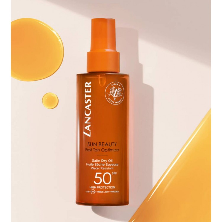 Como aplicar Lancaster Sun Beauty Fast Tan Optimizer Satin Dry Oil SPF50 150mlEvitar o contacto com os têxteis. Pode manchar. Agite antes de usar. Aplicar em todo o corpo, antes da exposição solar. Repetir generosamente a aplicação com frequanência, para manter a proteção, especialmente depois de nadar, de transpirar ou de se secar com a toalha. Manter os bebés e crianças pequenas afastadas da luz direta do sol. A exposição excessiva ao sol constitui um grave problema de saúde, mesmo quando se usa proteção solar. Resistente à água. Testado dermatologicamente.