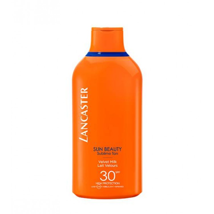 Como aplicar Lancaster Sun Beauty Sublime Tan Velvet Milk SPF30 400mlAplicar em todo o corpo, antes da exposição solar. Repetir generosamente a aplicação com frequência, para manter a proteção, especialmente depois de nadar, de transpirar ou de se secar com a toalha. Manter os bebés e crianças pequenas afastadas da luz direta do sol. A exposição excessiva ao sol constitui um grave problema de saúde, mesmo quando se usa proteção solar. Resistente à água. Testado dermatologicamente.