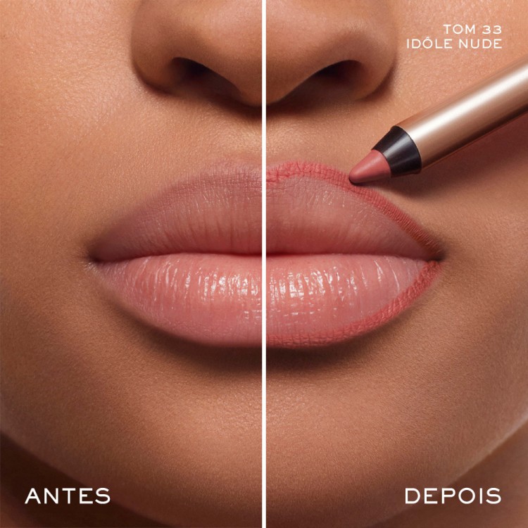diretamente no contorno dos lábios antes de usar brilho labial ou batom.
