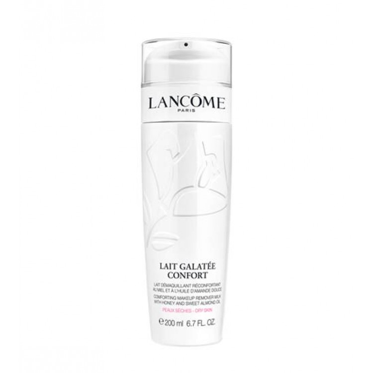 Leite desmaquilhante Lancôme suavizante com mel e óleo de amêndoas doces. Para uma limpeza delicada e suave especialmente indicada para uma pele seca. A pele fica hidratada, suave e elástica. Sem deixar resíduos.