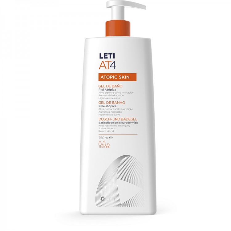 LETI AT4 Gel de Banho 750ml: Fórmula específica para a higiene diária da pele atópica, seca e sensível.