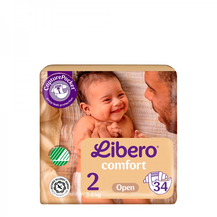 As fraldas Comfort  moldam-se aos movimentos do bebé, evitando vazamentos e permitindo que se deite ou levante com segurança. Para bebés entre os 3-6 kg.