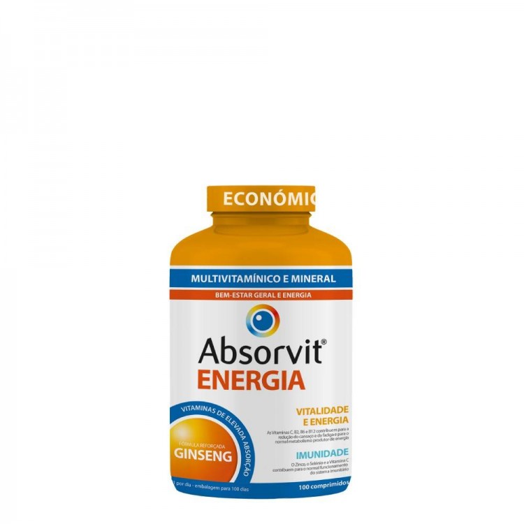 Absorvit® Energia é um suplemento alimentar de uma única toma diária que contém vitaminas e minerais. A fórmula foi reforçada com um extrato padronizado de ginseng, com alta concentração de ginsenósidos (20%).