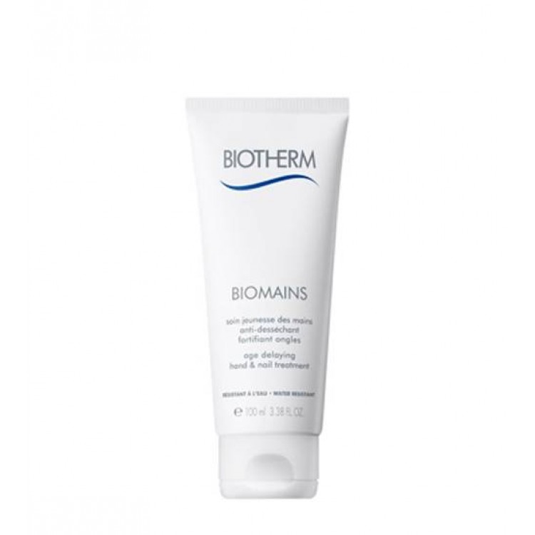 Biomains de Biotherm é um creme de mãos multiusos, que reforça a função de barreira da pele com agentes hidrantes e vitamina F para manter as mãos suaves. Tem uma textura levemente cremosa, macia e hidratante, refrescantemente perfumada, que penetra imediatamente. Protege as mãos da pele seca, do envelhecimento prematuro e fortifica as unhas.