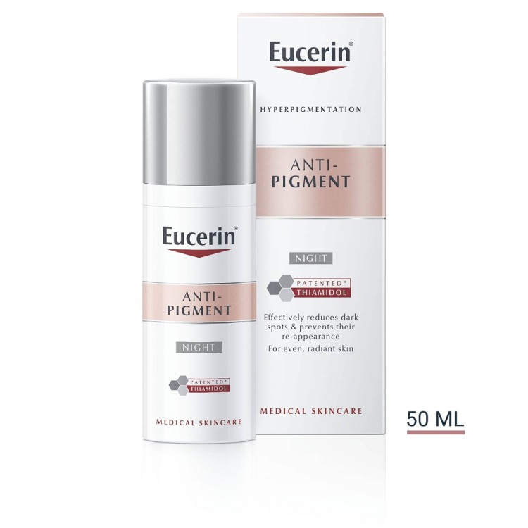 Como aplicar Eucerin Anti-Pigment Hiperpigmentação Creme de Noite 50mlAplique de noite no rosto, pescoço e decote bem limpos, massajando suavemente para penetrar na pele.