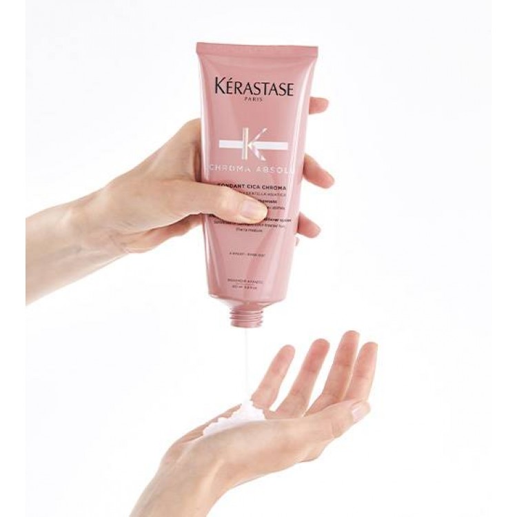 Descrição Um potente condicionador fortalecedor anti porosidade para todos os tipos de cabelo com coloração sensível ou danificado, especialmente adaptado a fibras finas a médias. Este creme rosa leve sublima e hidrata o cabelo para um toque suave e uma coloração vibrante e brilhante.