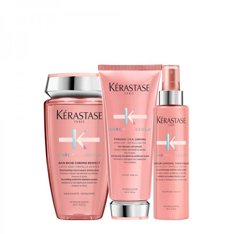 Kérastase Chroma Absolu Bain Riche Chroma Respect 250ml + Fondant Cica Chroma 200ml + Serum Chroma Thermique 150ml
