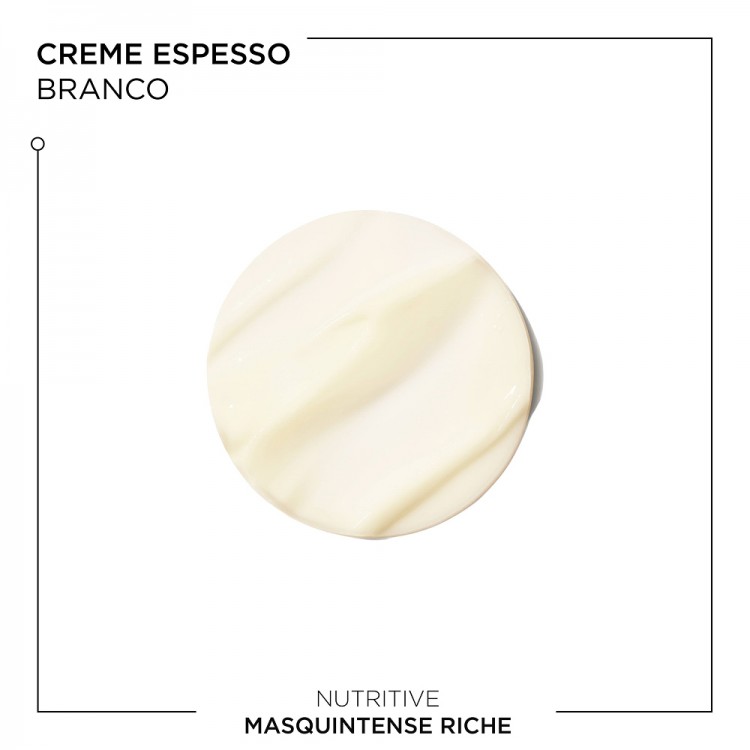 Masquintense Riche possui uma textura cremosa branca, rica e espessa, tornando-o o cuidado ideal para cabelo muito seco. Até +89% de hidratação imediata e 72h de nutrição*.