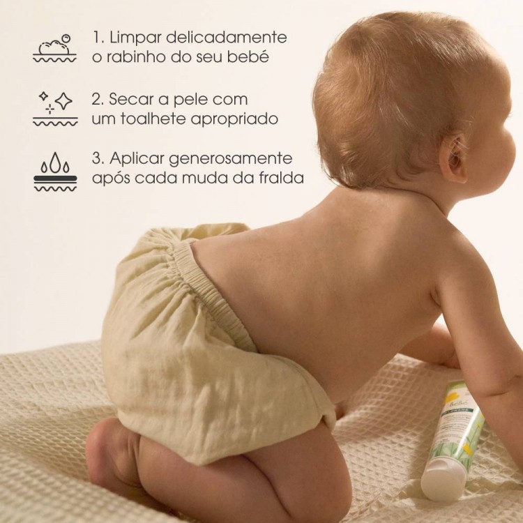 Como aplicarAplicar uma camada espessa de creme após cada muda de fralda na pele limpa e seca.