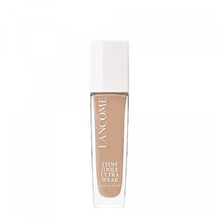 Teint Idole Ultra Wear Care & Glow. A base líquida desenvolvida pelos laboratórios Lancôme com um acabamento luminoso natural e uma combinação de princípios ativos para hidratar e fortalecer a sua pele: 0,01% Ácido Hialurónco e Ácido Mandélico.