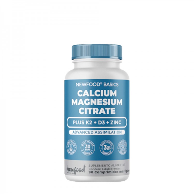 Por 3 comprimidos: Sais de Cálcio do Ácido Cítrico (21.1% Cálcio) – 506.4mg, Sais de Magnésio do Ácido Cítrico (15.45% Magnésio) – 139.05mg, Gluconato de Zinco (12.9% Zinco) – 7.74mg, Menaquinona (0.2% Vitamina K2) – 120mcg, Colecalciferol (0.25% Vitamina D3) – 6mcg.