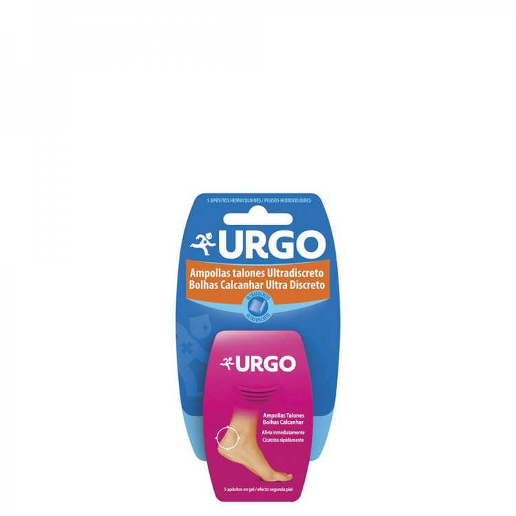 Pensos hidrocoloides ultra-discretos com o formato ideal para o tratamento de bolhas no calcanhar, com extremidades finas e compressa central reforçada.