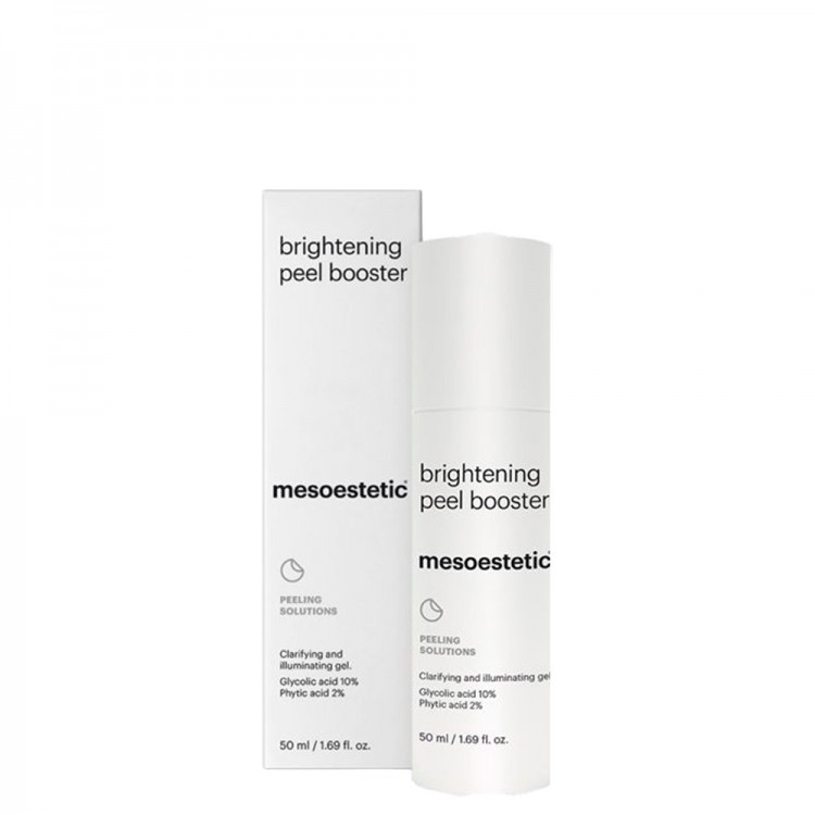 Mesoestetic Brightening Peel Booster 50ml: Gel não gorduroso de ação renovadora e clareadora baseado numa combinação sinérgica de ácido glicólico e ácido fítico.