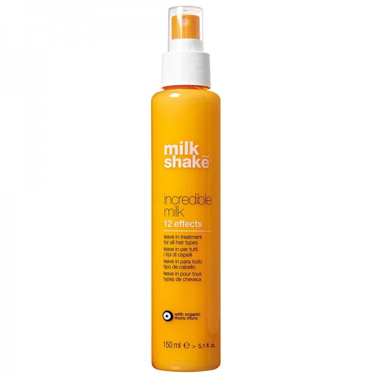Milk Shake Incredible Milk 12 Efeitos 150ml é um Leave in para todos os tipos de cabelo com 12 efeitos. 1. Repara todos os tipos de cabelo, 2. Disciplina o cabelo crespo 3. Previne as pontas duplas, 4. Proteção térmica, 5. Styling de longa duração, 6. In