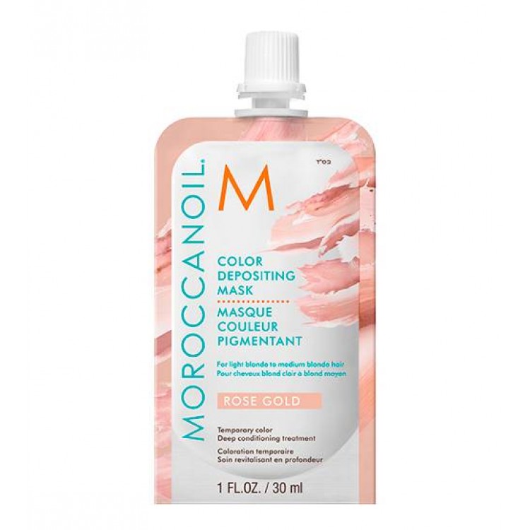 Como aplicar Moroccanoil Color Depositing Mask Rose Gold 30mlAplicar uma pequena quantidade sobre o cabelo limpo e seco com a toalha. Seccionar o cabelo e distribuir o produto de maneira uniforme com um pente de dentes largos. Deixar atuar 5-7 minutos. Os resultados poderão variar dependendo de vários fatores, tais como: a cor original e a porosidade do cabelo. Ajustar a duração da aplicação para obter o tom que se deseja:para tons subtis e suaves, deixar atuar 5 minutos. Para tons mais fortes e intensos, deixar atuar 10 a 20 minutos. Enxaguar bem.
