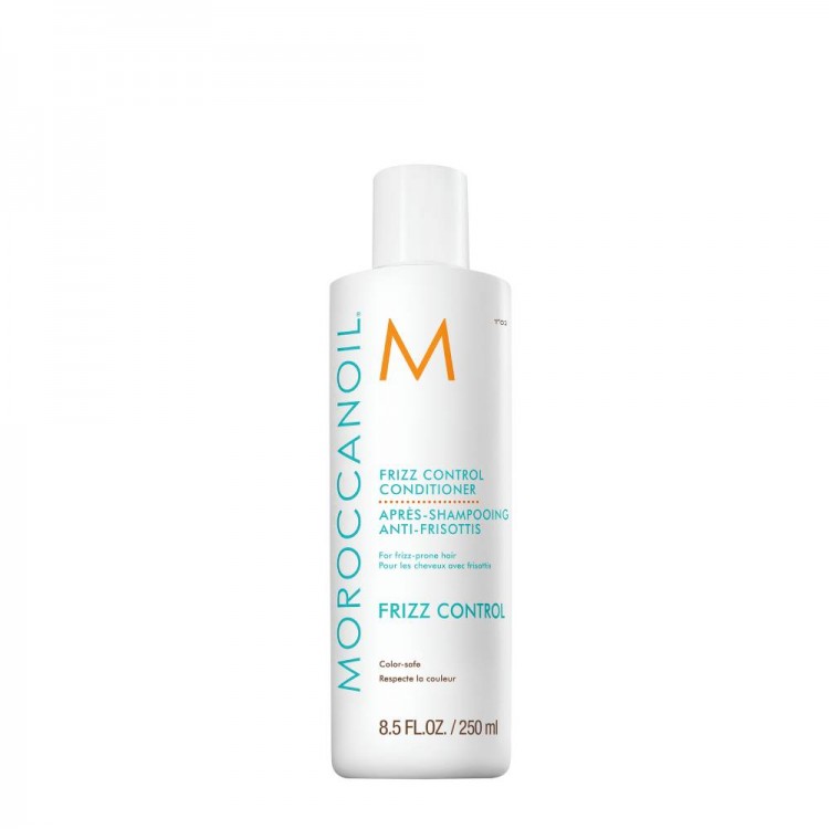 Depois de aplicar o shampoo Frizz Control da Moroccanoil, retirar ligeiramente o excesso de água do cabelo e aplicar o condicionador do meio do comprimento até às pontas. Deixar atuar durante 1 a 2 minutos. Enxaguar abundantemente.