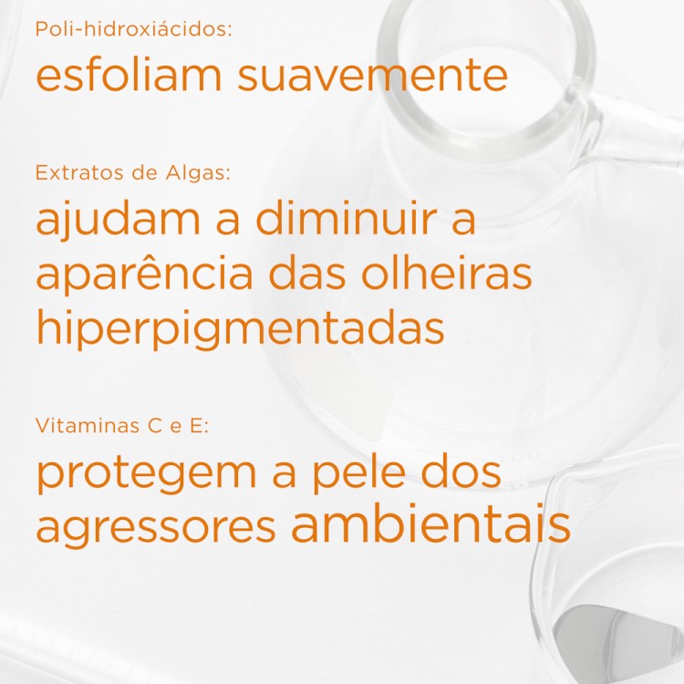 Descrição Este poderoso creme combina antioxidantes, péptidos e extratos de algas para combater as olheiras hiperpigmentadas visíveis. Uma fórmula antienvelhecimento com gluconolactona e ácido biónico que atua na matriz hidratante natural da pele para corrigir e iluminar a aparência da pele hiperpigmentada do contorno dos olhos.