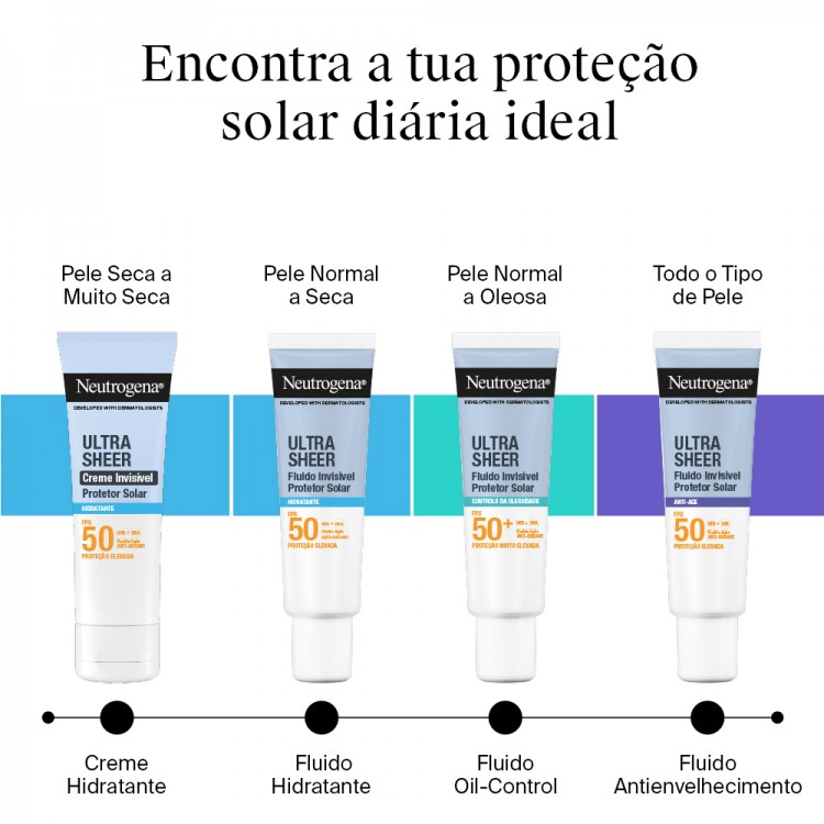 A pele seca ou muito seca necessita de proteção solar diária que, além de proteger contra os efeitos nocivos do sol, contribua para reforçar a hidratação e o conforto cutâneo. A exposição solar pode intensificar a sensação de secura, fragilizar a barreira da pele e acelerar o aparecimento de sinais de envelhecimento. Com uma fórmula avançada de proteção de largo espetro, este cuidado facial ajuda a proteger a pele contra os raios UVB, UVA longo, luz visível e poluição, fatores que contribuem para o fotoenvelhecimento. A textura leve e confortável funde-se facilmente com a pele, proporcionando um acabamento invisível e agradável para uso diário. Desenvolvido para integrar a rotina de cuidado do rosto, oferece proteção eficaz enquanto ajuda a manter a pele hidratada, suave e com uma aparência saudável ao longo do dia.