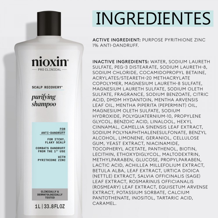 O sistema de 3 partes Scalp Recovery™ conta com a Tecnologia ZPT-NIODerma™ e extrato de chá verde. Os ingredientes, dermatologicamente testados, limpam suavemente o couro cabeludo, ajudam a restaurar o seu equilíbrio natural e reduzem a queda do cabelo associada à comichão.