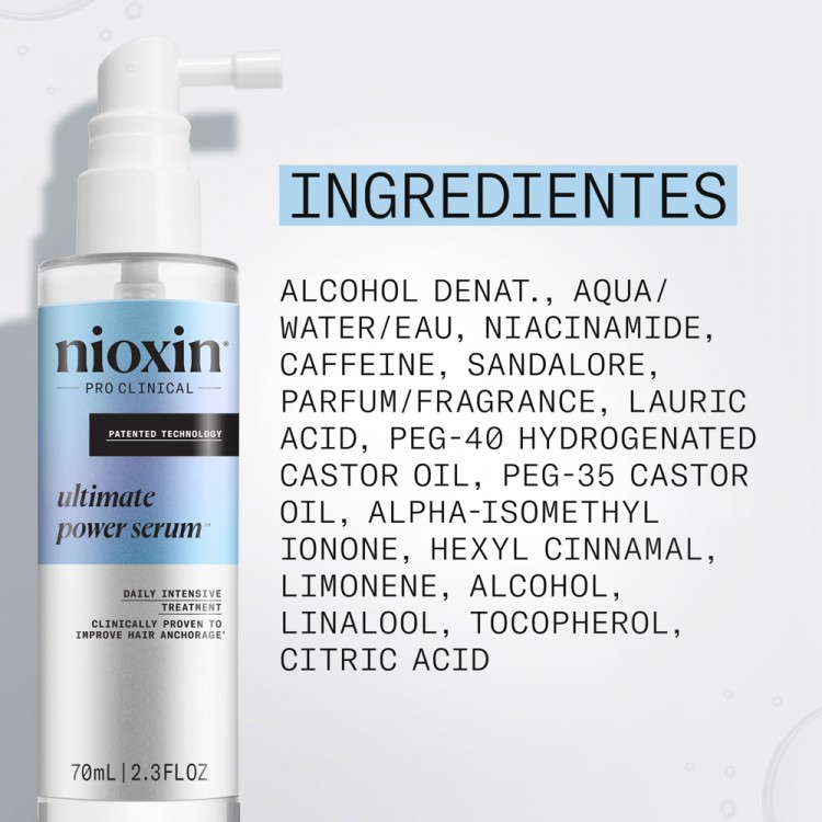 DescriçãoO sérum antiqueda Ultimate Power é um tratamento capilar sem enxágue, com eficácia clinicamente comprovada na redução da perda de cabelo em apenas 8 semanas*, melhorando a fixação das raízes ao couro cabeludo e ajudando a aumentar a densidade capilar desde o primeiro uso. Sem parabenos, sulfatos ou corantes.
