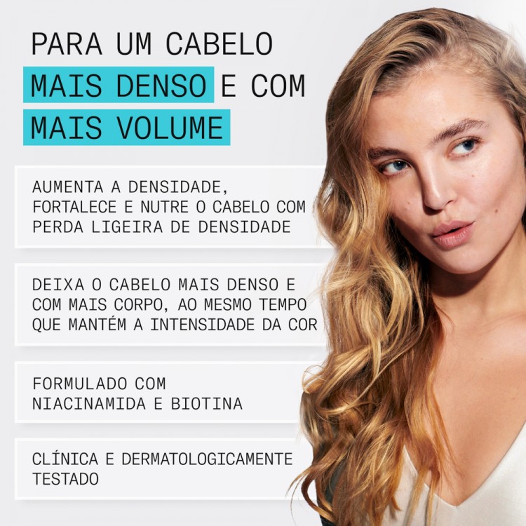DescriçãoO condicionador do sistema de cuidados capilares 3 para cabelo com coloração com perda de densidade ligeira é o segundo passo de uma rotina de cuidados de três passos, especificamente formulado para fortalecer os fios de cabelo e ampliar a estrutura da fibra capilar.